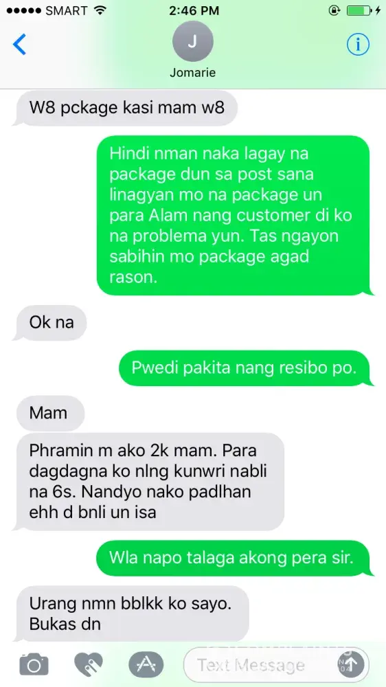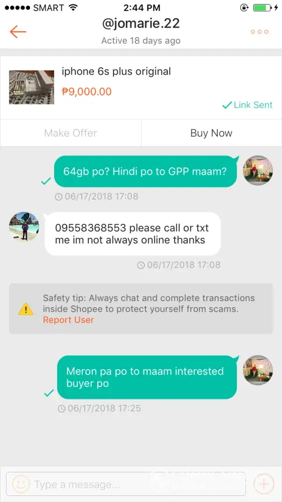 I ordered iPhone 6s + that cost 9, 000, so I texted the number appeared on the chat. Then the seller told me that the item was still available and He hurriedly told me that I need to pay tha half of the amount thru gcash remittance and the remaining half payment will be given if Got the item. So I paid it and the suddenly the seller told me that It's better to paid it in a full amount so that there will be no hussle so I did it I paid the full amount then he always told me that he already ship the item. But there's no item delivered in LBC so I texted him he got so many reason about the delay he said that the said item is a package I should buy the iPhone 6s because it's a package. So I refuse then suddenly he told me that the item was supposedly 12k I have to pay the remaining amount because the item got hold he can't get it to the main seller so that time I already found out that it's very suspicious and I think I got scammed it's been a week already he didn't return my money yet. Please help me get my money back.