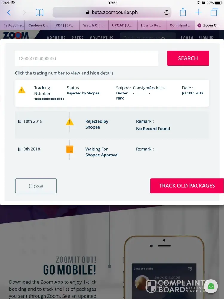 order shipped to zoom courier but “rejected by shopee†on zoom courier tracking history