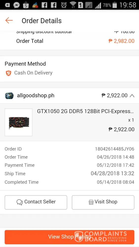 Hi good day im noriel i send this complain because im so dissapointing I buy videocard last few months ago @allgoodshop.ph dated 04/26/2018 and i receive the item dated 5/12/2018 and now its not working i almost used this item for just two months and 12 days and yet it its not working i spend money and im not satisfied pls pay attention to this asap...or i can change item for my money...or for refund thank you
