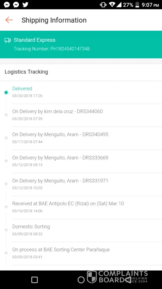 Super delayed delivery. Tracking shows that the parcel is stuck in their delivery hub. I kept on communicating with the seller but he won't reply anymore. I kept on following up with the customer service but still got nothing from them. I filed for a return/refund but the seller, understandably, rejected it since he shipped the item on time. I'm still waiting for Shopee's action on this. Hoping for a positive response from them since the item will be of no use anymore even if it arrives.