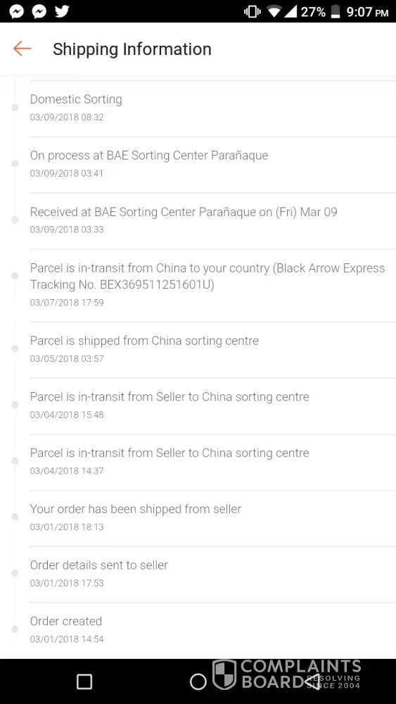 Black arrow tracking number located at the attached pictures. Hello po good evening, i'm having problems with my delivery with black arrow as a courier, it has been almost a week since they received my parcel and until now it hasn't been delivered to me. I tried emailing and contacting them but unfortunately no one answered me. The logistics stated that...
