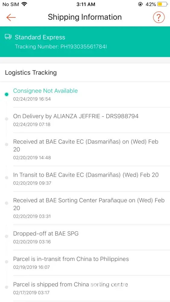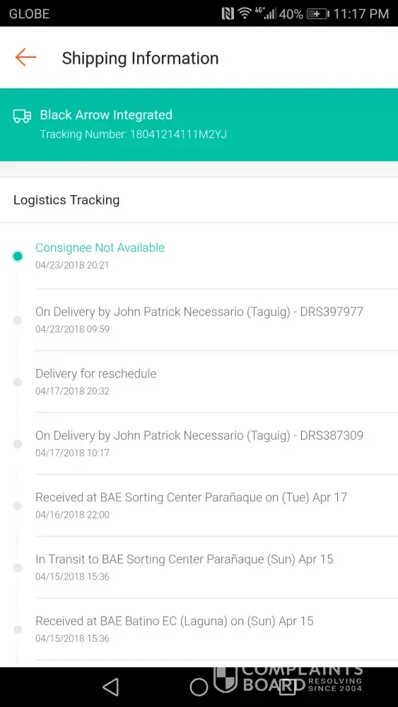 This is the 3rd time that my order was assigned to him. My first order that he's supposed to deliver was returned to the seller because he tagged me as consignee not available and the next thing I know is it was already scheduled for return. Didn't receive a call or message from the rider but I did received a msg from BAE that my order is out for delivery. Same goes to my second order, he tagged my order as consignee refused to pay, didnt receive a call or msg from him. So I message the seller and it was reassigned to a different rider, luckily that rider named Ronald Duarte delivered it at my doorstep. And the 3rd one, I got so frustrated, april 17, 2018 I received a message from BAE that the parcel was out for delivery however, no one came and it was for reschedule for no reason, after 6 days of waiting, I even emailed them to make a follow up finally, it is rescheduled for today april 23. Waited ALL DAY and nobody came and to my surprise after checking the app the status is consignee not available. Such a waste of time. I'm so frustrated that i feel like crying.