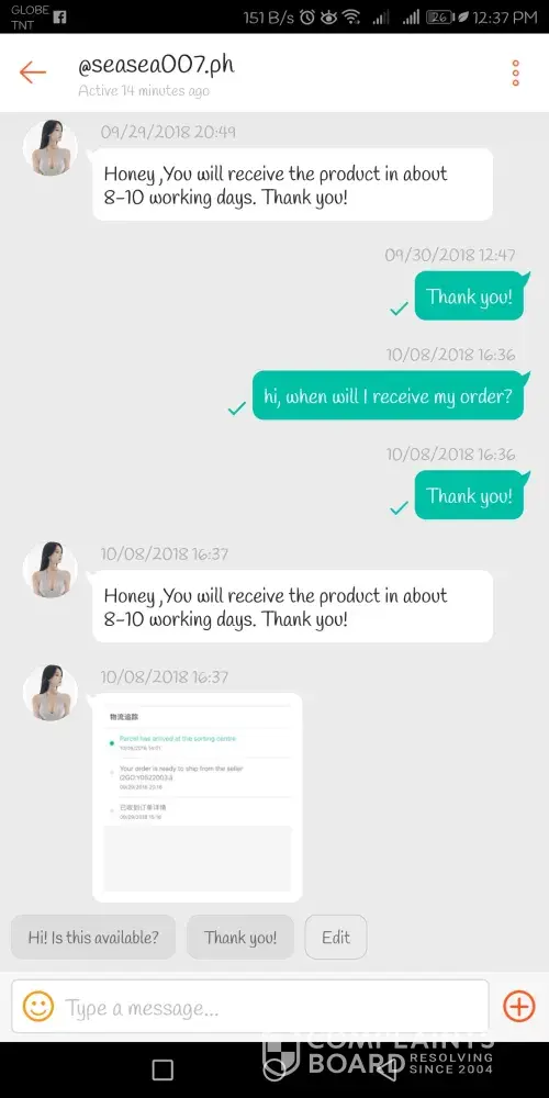 But the seller ignore my remind. Shopee please take action the case.