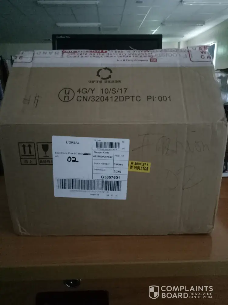 Broken seal (tip cover) on hair color developer (Pls. see attached pictures). Need to be replace of the same item. Pls. make it possible to replace with in this week.