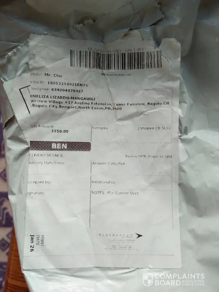 I was about to received 16 curtains fron the seller (higoodstuff. ph) 8 blue and 8 yellow curtains for the amount of P2, 150. What was delivered by BlackArrow Express today was only 8 blue curtains but the delivery boy collected the amount of P2, 150. I ran after the delivery boy and told him that what was delivered was lacking so he told me to complain at shopee. Please tend to my complaint immediately I cannot accuse the delivery boy or to find out whose fault or the seller is a scam. Thank you and Godbless
