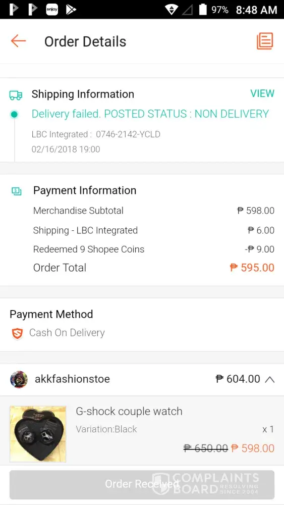 Paulit ulit na Lang I'll check the status Ng order ko sa shopee gshock couple watch, , twice delivery failed, , Ang tagal pa namn Ng serbisyo nio tapos posted non delivery ... Pki follow up naman, , I'LL send the screenshot of my order indicated the alphanumeric tracking #