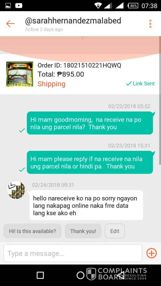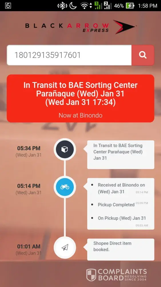 I ordered last january. Successful pick un on january 31. I have 3 order and was picked up on the same date. Ngayon, feb 19 na. Still in transit to parañaque sorting center? Gaano po ba kalayo ang parañaque from the seller's house?! Still in transit pa eh! Tapos nag mag ako, at first nag reply sila. Tapos sunod, di na nagrereply. Seen pa! Ngayon I posted on my wall. Baka naman iboblock pa ako nun? I ordered 8sets of gtec, 5pcs aloe vera gel and a threader. P4000 sobra na ung nabayaran ko. Hindi ko naman makuhakuha ung refund kase dinidispute ng seller. They have the right naman pero kasalanan lahat ng blackarrow! May legal actions po ba dito?