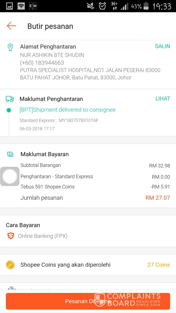 I already received my oder yesterday, id no 18022115215T862. but, the seller miss 2 item from my oder listing. I already inform to seller about this prob. I hope shopee can help me to resolve this prob ASAP... kindly find attached..