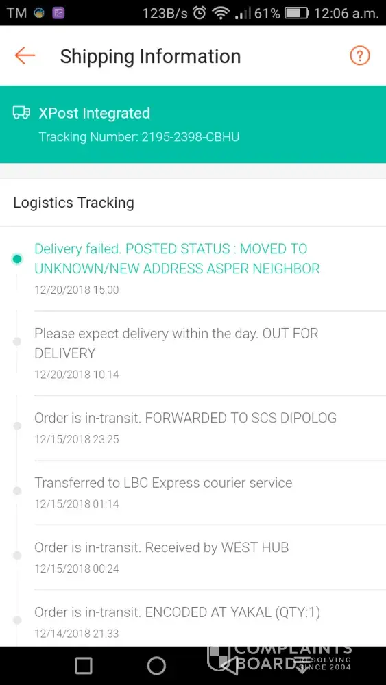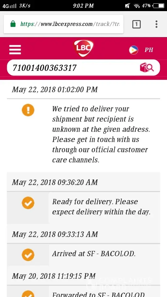 Hi. Same complain here. Naghintay ako buong araw kasi may delivery daw today. No delivery happened. Wala ring nag text na courier asking exactly where Im residing. Tapos now status is failed delivery kasi change of address daw AS PER NEIGHBOR. They should have contacted me, the buyer, if they can't locate my house exactly so I could direct them. Pero WALA. LBC please lang. Ayusin ang serbisyo.