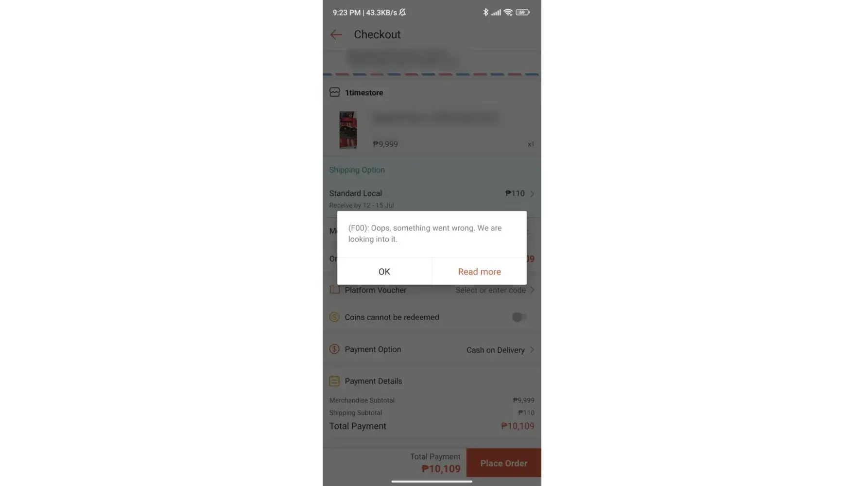 June 30 2023, I ordered at Kimstore a Tecno Camon 20 Pro 5G, there's no movement with the shipment, on July 3 2023 I sent a message to the seller asking for an update about my order, they just said sorry because the item is out of stock, for 3days they've just told me that it was out of stock, then I got through CS chat about the issue with kimstore and right after that kimstore cancelled my order stating I was the one issued the cancellation wherein I told the CS chat agent that I will give them a chance to ship it out until July 5, I told kimstore before that I don't need their apology because they keep on saying sorry and apology for what happened whereas what I want is an action about it, but instead they cancelled my order, refunded my spay later and for my disappointment I reported them, then right after that same day of July 4 2023, I can't make any transaction, I can't proceed with check out as I keep on getting F00 Error, I forwarded the issue with the CS agent and provided a screenshot and was advised that it might be the voucher or I have a multiple account or multiple device, again, the issue started when I'm on a mobile phone I was able to make a purchased to kimstore and other orders before the kimstore issue, so I followed the CS advised that it might be the voucher o while on chat I did tried to minimize the chat and go through the ordering process but this time no vouchers are used it's just a plain order transaction withouth anything else, still was not able to proceed with check out. The CS agent firmly stated that it was a multiple account or a voucher wherein I already provided them with screenshot that there's no voucher being used but still I'm getting the F00 issue, I only happen to use my laptop just this day of July 5 2023 just to isolate the issue that it might be my device whos having an issue with the app, but to no avail, it's also happening with the desktop version. from here I'm very frustrated for the action taken by the store and the CS agents who keeps on saying that it was a voucher or a multiple account. Take note, issue started when I was on my phone it is in the latter that I tried to use my laptop and they don't get it I don't know what language do I have to use for them to understand that the issue happened when I was on a 1 device a cellphone no multiple account and it happened after the issue with kimstore, Now I don't know what to do anymore, it looks like it was my fault to use a voucher that can be use without error and a multiple account or device which I do not have. I feels like I'm the one causing all this problem where I'm only buying a gift for my son that supposed to be given on July 8 but now everything is ruined because for cancellation of kimstore who let me waited 3 days and waited for my message before they updating me that the item is out of stock and out of nowhere cancelled it and putting on the blame finger on me that I was the one who request for the cancellation. This is so frustrating beyond comprehension, hassle free shopping turned into a very frustrating and disappointing moment in my life. You can also check the chat conversation with the agent about the kimstore issue with Enquiry ID: [protected]
