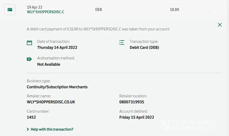 I called my bank last night to dispute a £10 debit card payment which I could not identify "shopperdiscounts.c". I only realized at that time that this payment had already been done for several months without me noticing it.