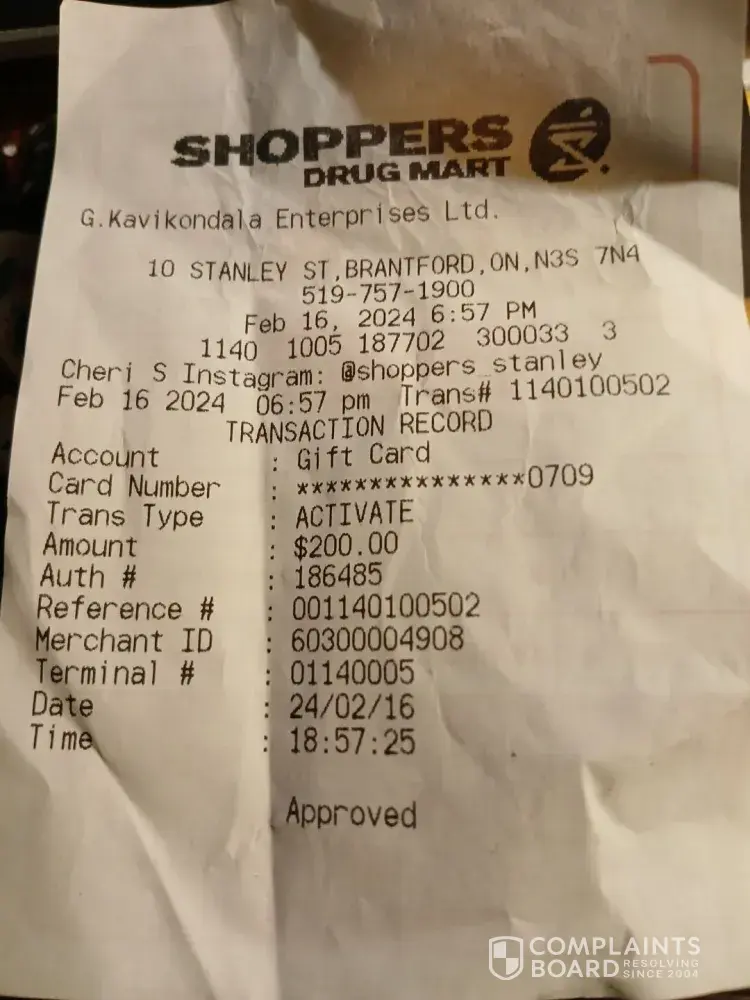 I bought a 200$ jokervisa prepaid card from shoppers drug mart, Stanley St, brantford, on. I get home hold on to it for a couple days I then activated it, within literal hours the card had been wiped clean of my entire 200$. The joker company has been contacted and apparently doing an investigation will take 7 -10 days. But other people I've talked to has had similar issues from shoppers. I don't know if this has anything to do with shoppers or what, but 200$ is a lot to spend and not get what I paid for. I'm totally blown away by this situation. For one you should immediately take joker prepaid cards off the shelves. Now I'm not really sure how this happened to me but I am lookn for my money back. I will be looking forward to hearing from