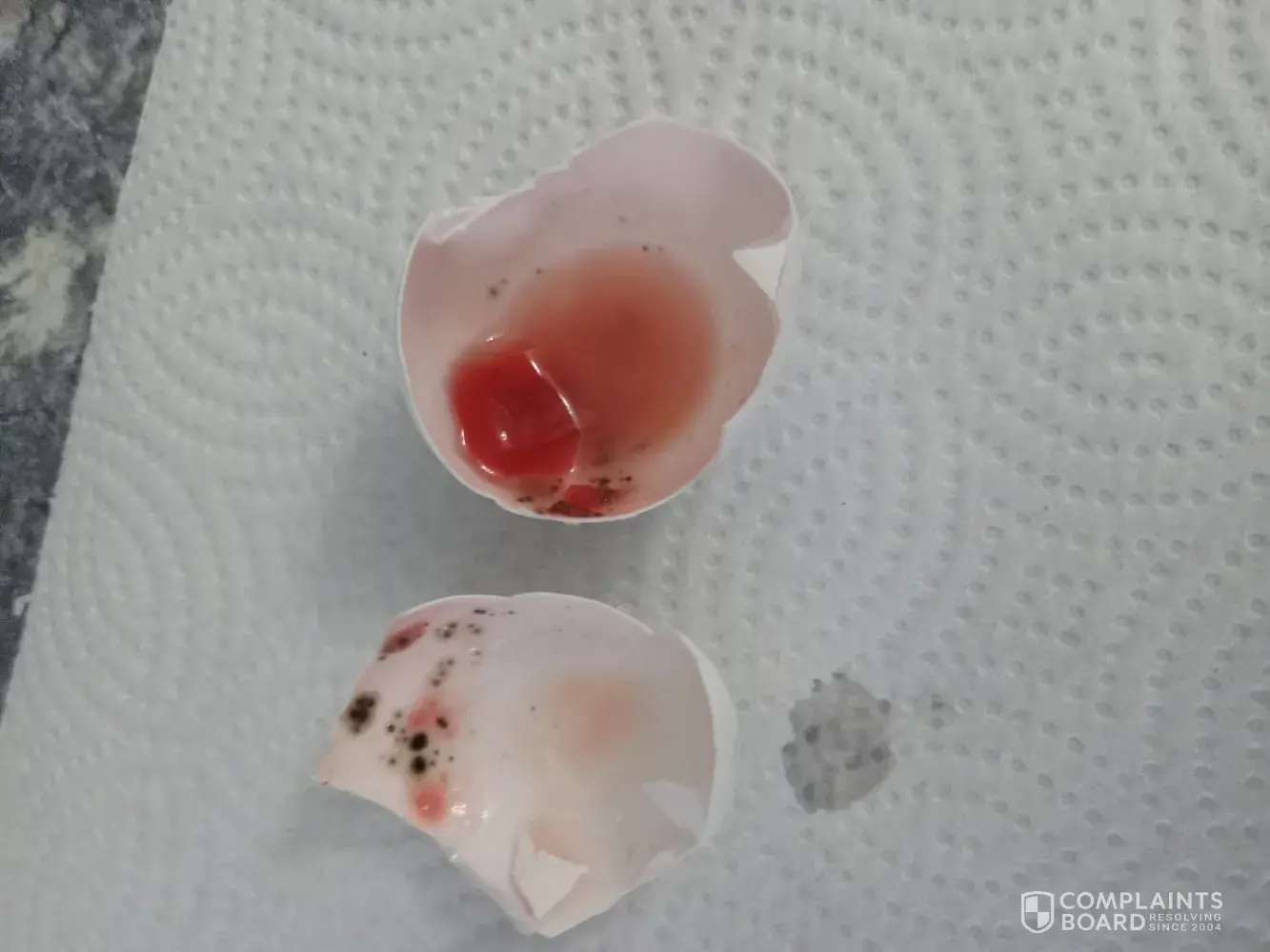 Time is 10:30 am nov22/2025. I was making poached eggs for my wife and I And the first egg I cracked open was all red with brown in it. I proceeded to clean the pot and threw the egg down the drain. I saved the egg shell with the red and brown in it and I saved the car ton also. We have pictures of the shell it is nothing but grose. I bought the eggs on...