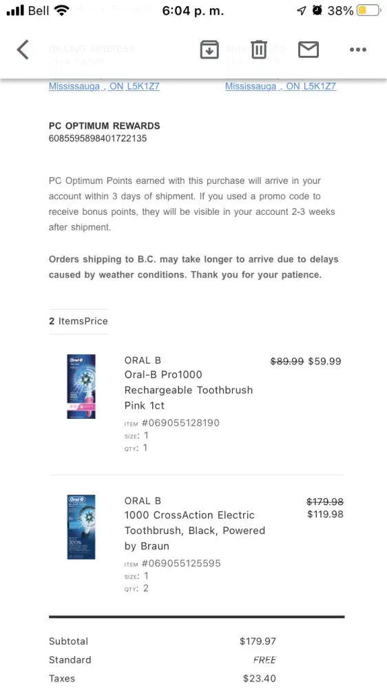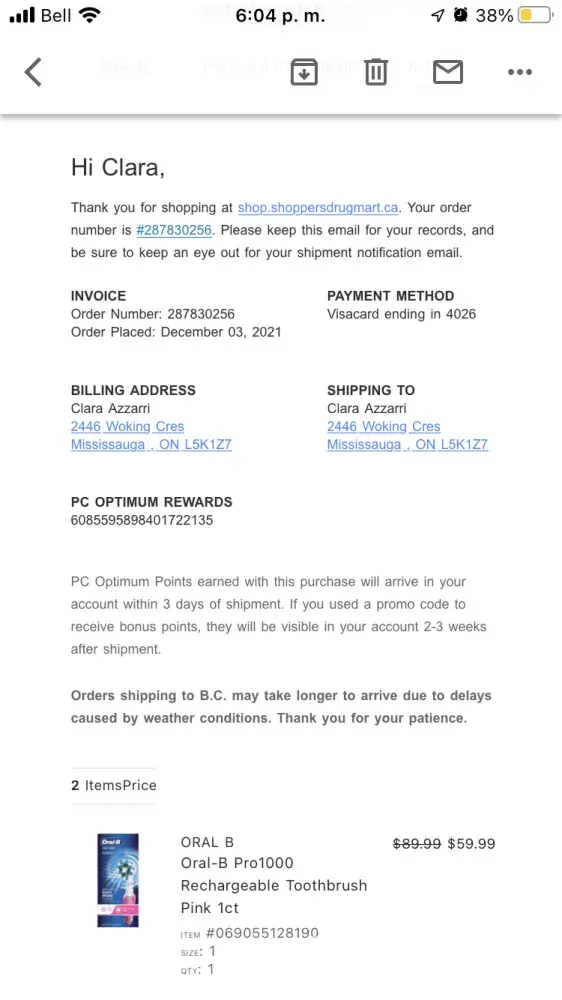 I got an electric toothbrush as a Christmas gift. I attach picture with invoice number and more information.
