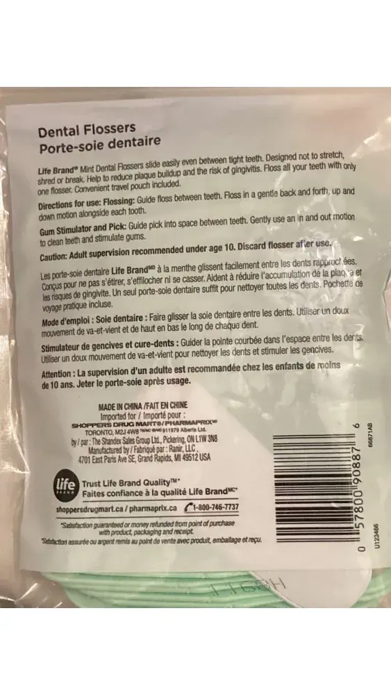 I purchased LIFE brand High performance fine mint flavored Dental Flossers. I tried using 3 of them and they frayed and 1 of them ripped and in between my teeth and I had to get tweezers to get it out.