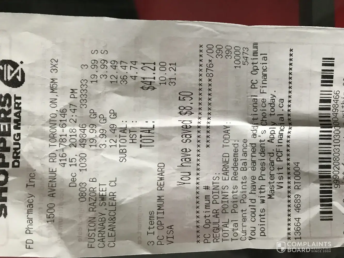 This experience dealing with Shopper Drug Mart has been pathetic on all accounts.