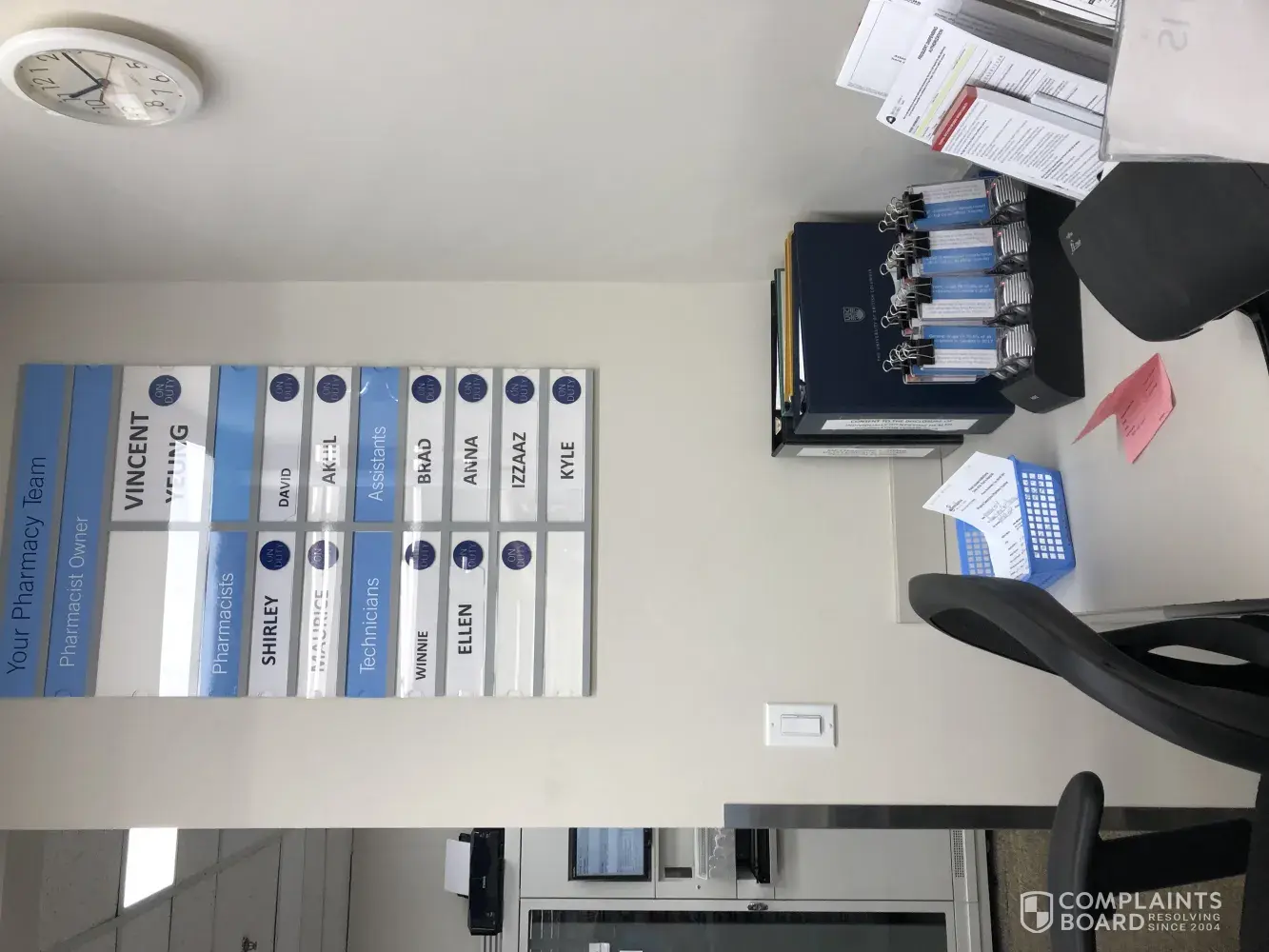 There is a problem at this pharmacy. First of all, they refuse to fill any Rx in under 24 hours without a lecture to you about what a favour they are doing for you. When I renew online, frequently the Rx is not available for 48 hours. These are not exotic Rxs but very standard products. When I visit the store, there are often many people in the pickup line, 7 or 8 people working behind the counter and 1 person serving customers. When I call, I frequently give up after being on hold for 10 minutes and drive to the store. The pharmacy is simply understaffed. Last time I was in, I asked to speak to the pharmacist in charge and was directed to a door that was locked with the lights off in the office behind. Clearly, he either was not there or the woman who directed me there did it deliberately because I was critical of their services.