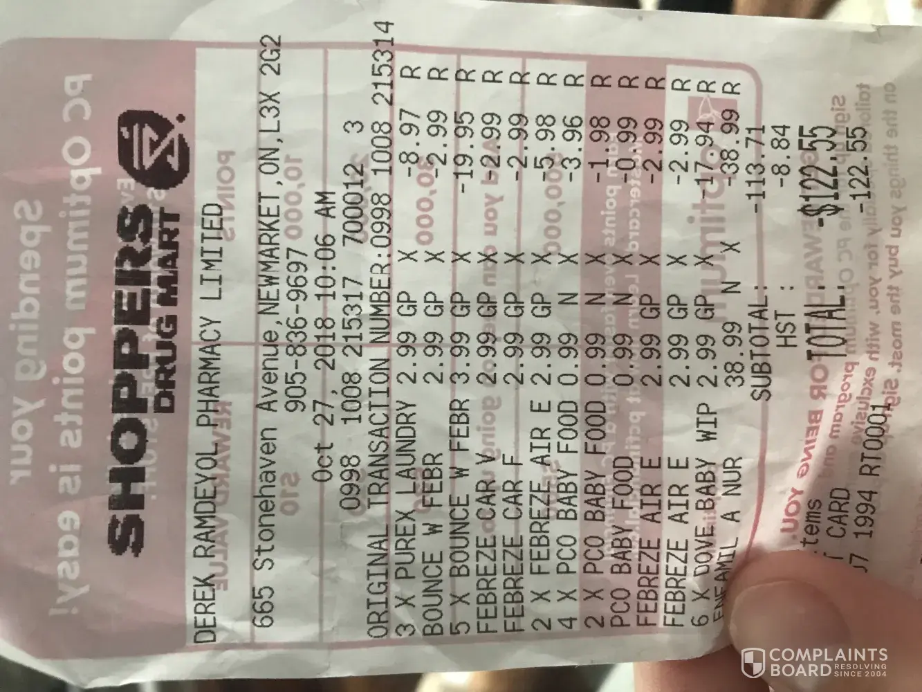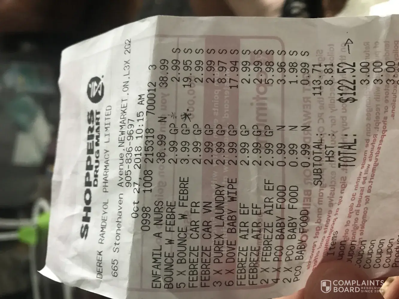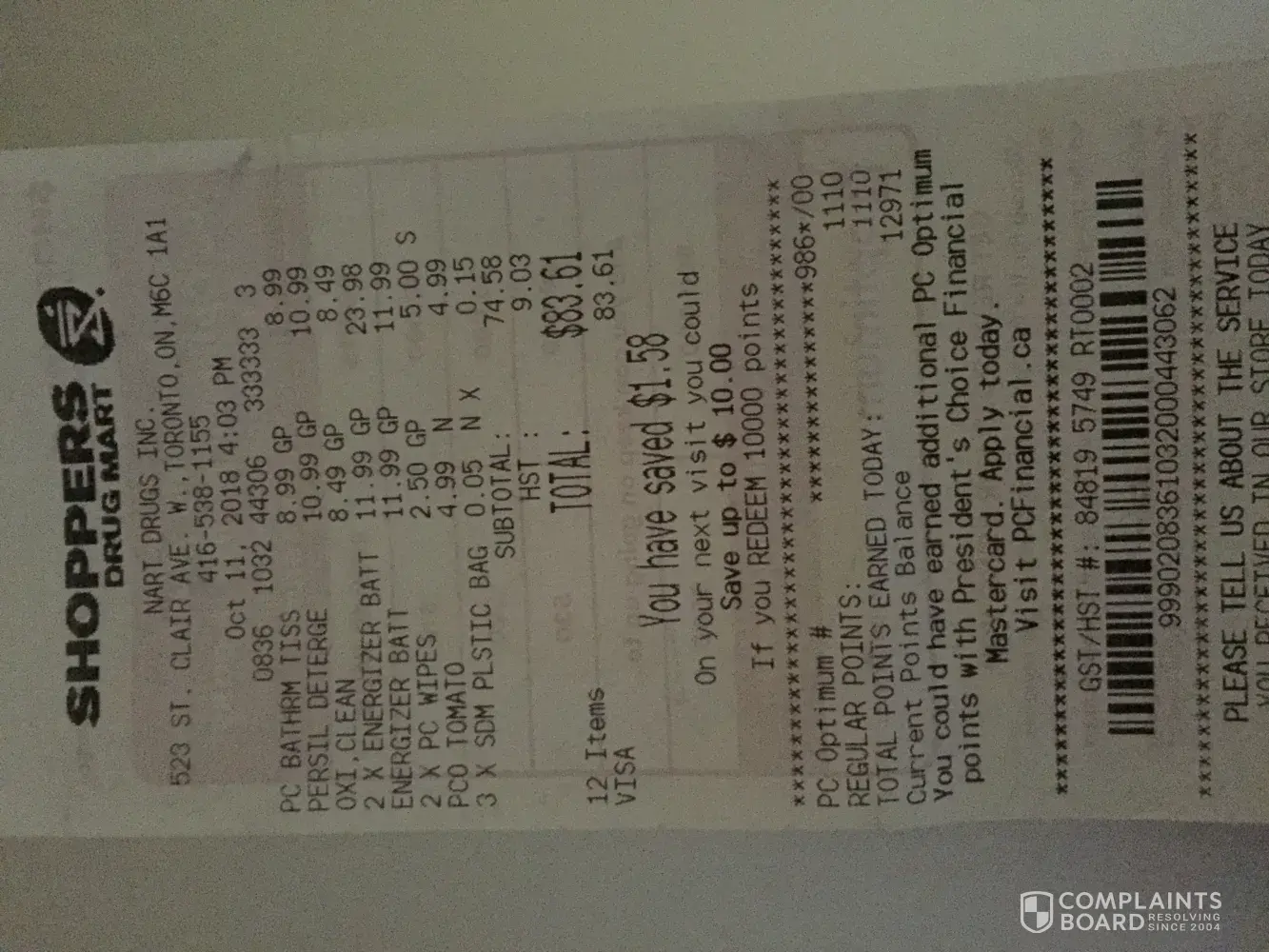 I went to 665 stone haven ave, Newmarket Ontario shoppers to take advantage of the 20X points on the optimum card. First the cashier didn't scan my pc optiumum card in the beginning of the transactions to get my points accordingly after she said she did, which didn't show my name or no. On the screen I paid and when she gave me my receipt no points had to return and she refunded me my money but kept my org. Receipt and gave me the refund receipt. Then processed the transaction again, and pic points accounted for but after I got home just this morning I checked my receipt after my Facebook Mom Coupon group with over 10K members said the bounce sheets were charged $3.99 instead of $2.99 and yes indeed she charged me $3.99 instead of $2.99. This is such an inconvenience on a customer not once but twice so now I had to go back to the location and they refused to give me the item for free, but I should be obtaining this item for free as it was scanned incorrectly under the "Scanner Price Accuracy Code" by law. So I did not obtain my refund of he correct amount and am expediting this matter. I hope you will be able to assist in the matter. I have the receipts to show the proof.
