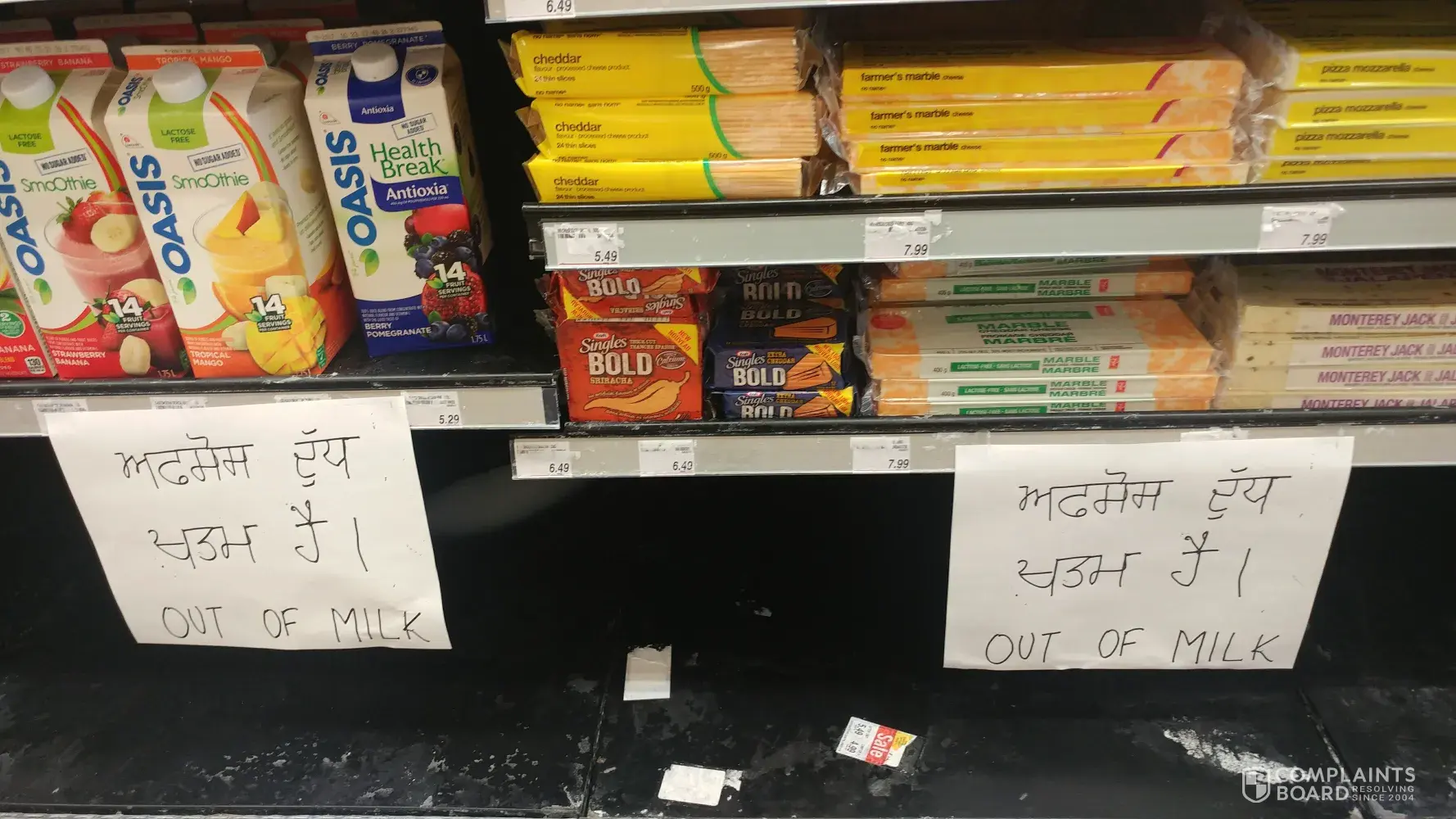 We live in Canada and and all advertising etc should be in English. Why is Shoppers drug mart (Sandalwood & Chinguacousy Rd) catering to people who do not speak English. The Shoppers Drug Mart is posting signs in store that are hand written not in English to inform customers that they are out of Milk! Why is this allowed? Why aren't we also posting these 'out of milk' signs in English and French? Sounds likes Racism!