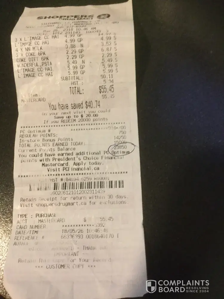 This is my first complaint to Shoppers Drug Mart. My family has been using SD for ever. I have all my medical prescriptions etc. done here.