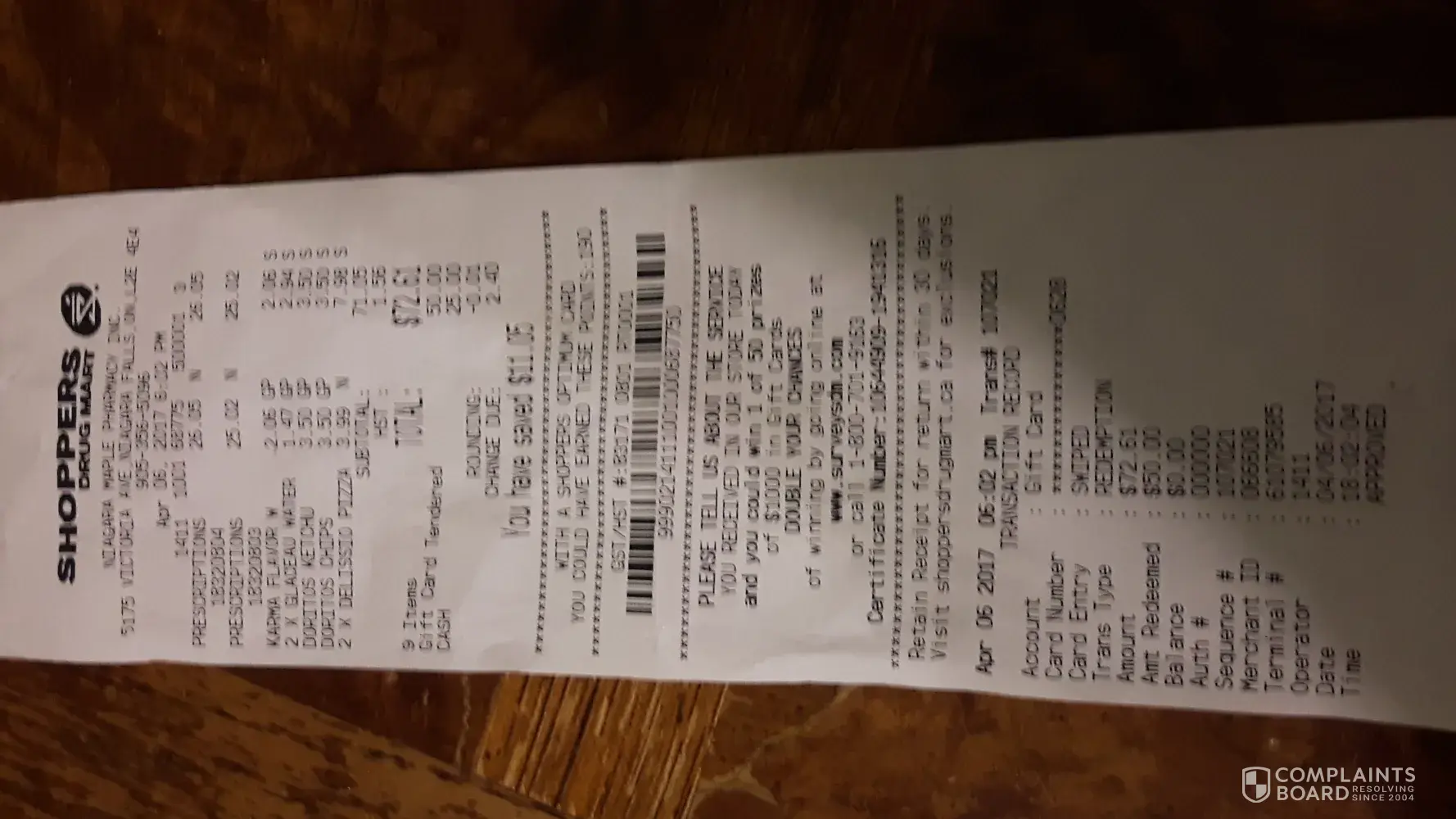 I went back to the pharmacy n got my prisciption as I asked for my prescription I put my 50 dollar gift card n my opitmim card beside eachother.she took my gift card n thn asked for 22.61 more. I went to give n she's said it was too late. So I missed out on my points. She said Nothing she could do about it. It seemed like she didn't care. So I left