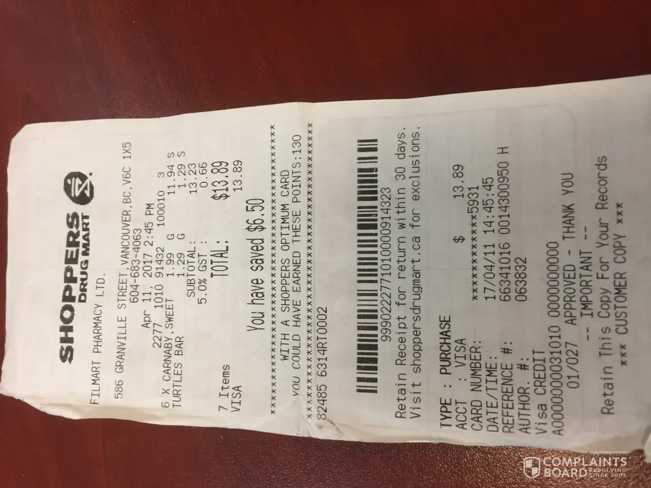 I was very surprised to see this happen and frankly it has left a bad taste in my mouth for me ever wanting to return to Shoppers Drug Mart.