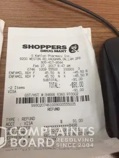 I'm disgusted at the fact that Shoppers Drug Mart would treat the situation as such, that I can't even return an undamaged product and a receipt to go with it. I spend well over $1000.00/mth on baby food and products. The point of me returning the Enfamil, was so I have the money back to purchase other baby products.
