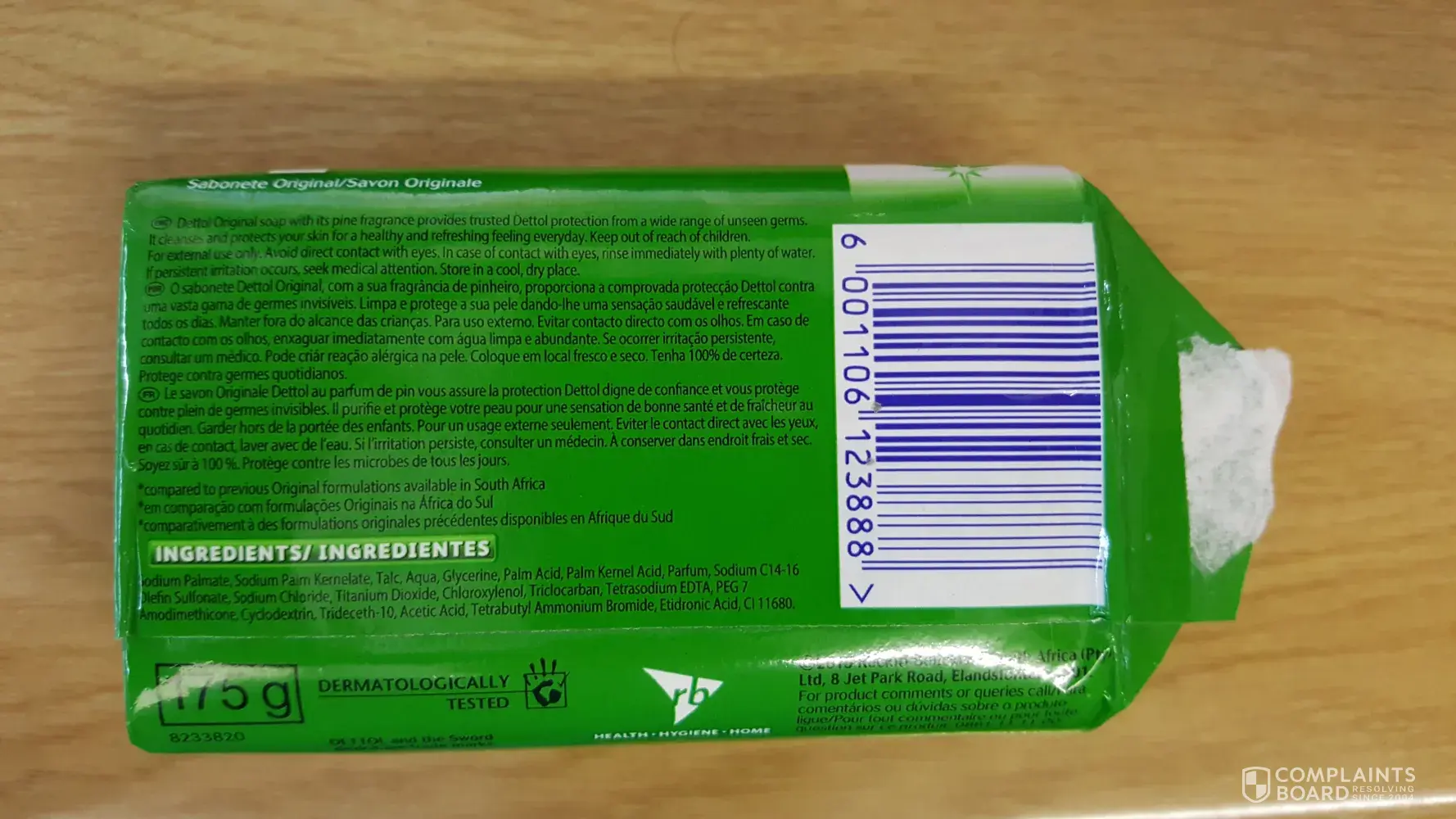 Purchased 6 bars of Dettol soap from Shoprite Checkers at the Atrium Mall (Over-port City, Juniper Road, Durban).