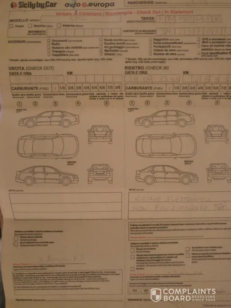 We have rent a car from Sicily by car company at the 7th of October 2019. We pick up the car from airport Malpensa and we delivered it at the Rome airport. We had been informed that the charge would be extra € 61. we paid with our card and the extra insurance that we have chosen and the amount of the 61 euro. On 24/12/2019 there was another charge from...