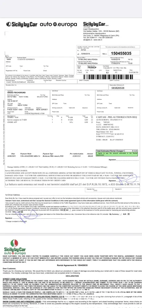 Subject: FW: SicilyByCar S.p.A. - Rental Agreement Copy