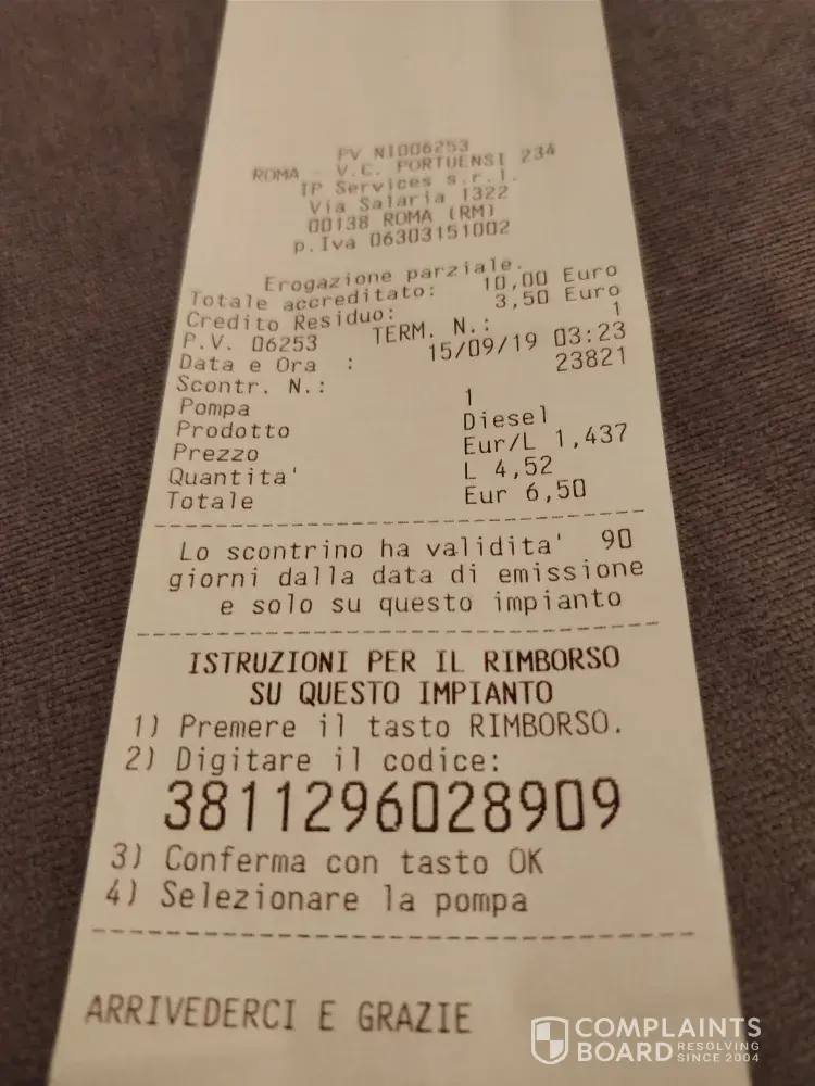 In the gas station was the automatic machine and the car was full with 6, 50€. Here you can see the photo of my receipt! Please check the problem of the car and take care about the money that you charged me...