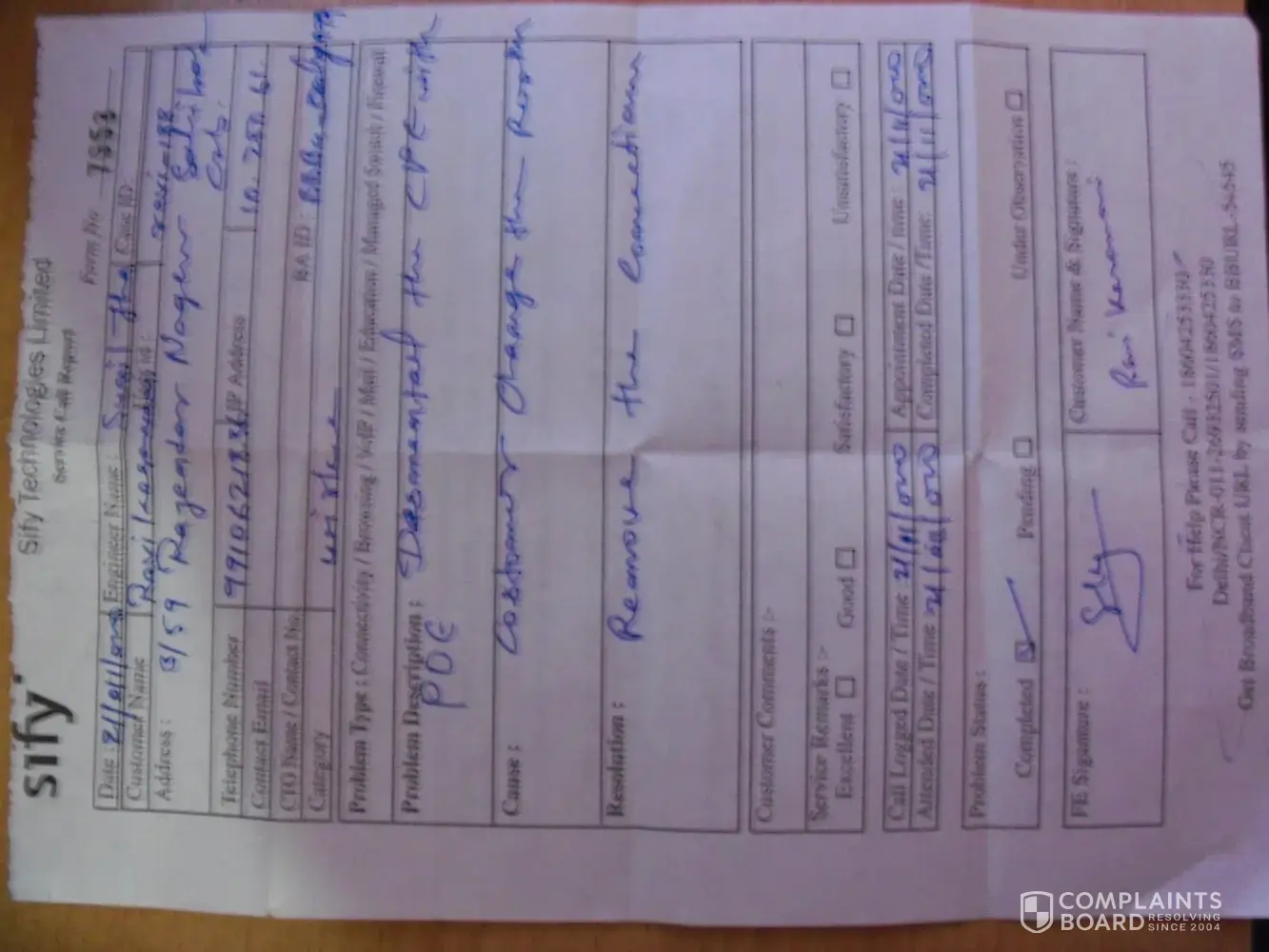 6. Call sify and they say will be solved within 24 hours which never happens as i explained.
