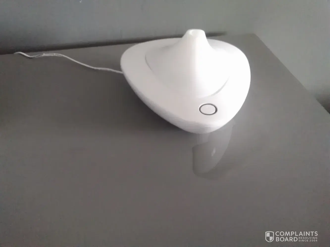 I purchased the Aroma diffuser on 08/09/2019 at lidl wrekenton store. I set it up and was happy with it. I unplugged it at 7pm. When I got up at 9am there was a puddle on my sideboard which must of been there for a while as it has basically ruined it. I cleaned it up and left it off then at 11am happened again. It has lifted the top layer of sideboard shown in pics I have attached. Obviously it has been leaking and faulty. It is now going to cost me to replace sideboard all because of a £14.99 diffuser. Please responde asap.