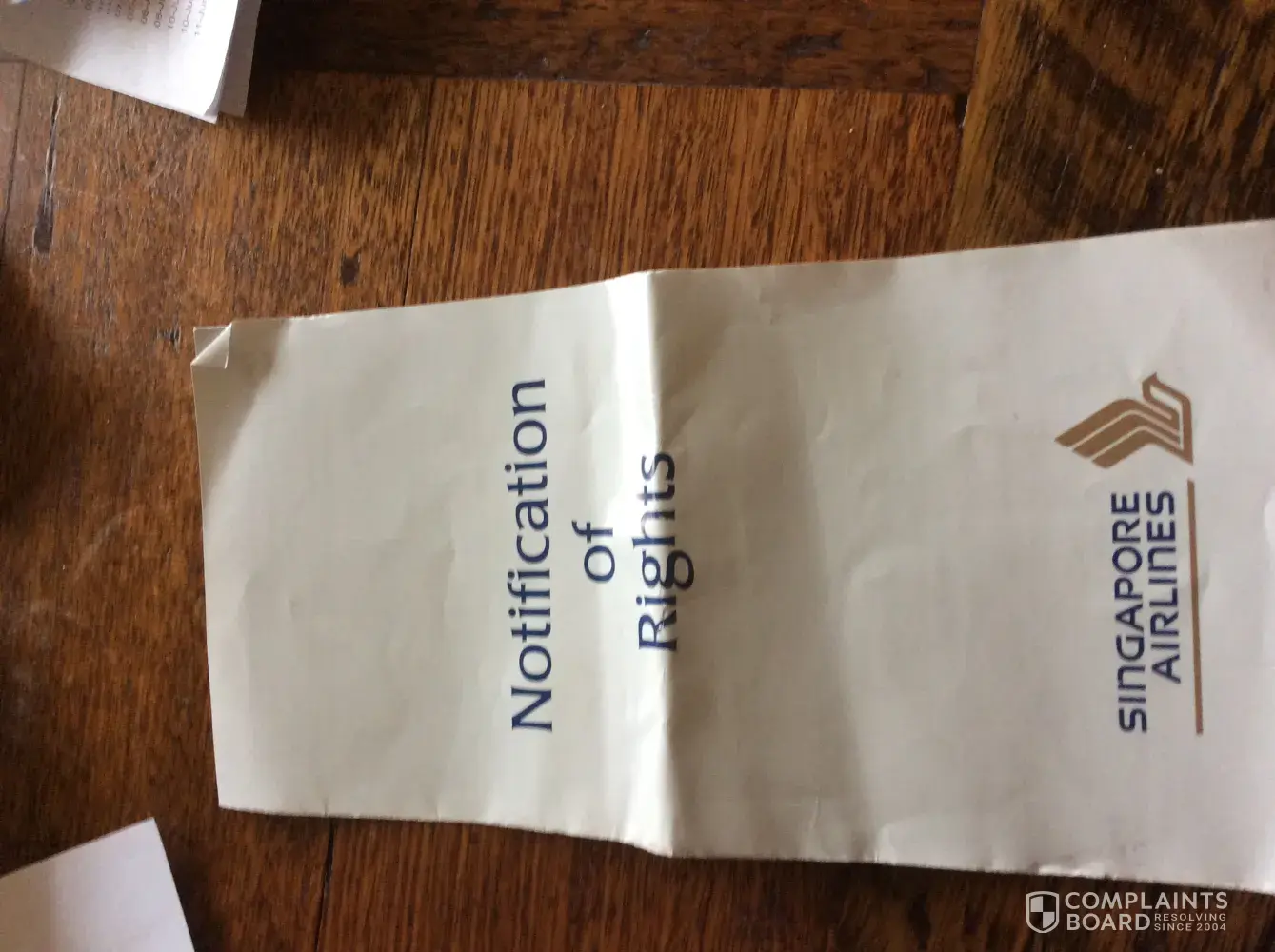We were given leaflets detailing our "notification of rights" by the singapore airline staff at heathrow and therefore request compensation for this very frustrating experience. John & jennifer riach