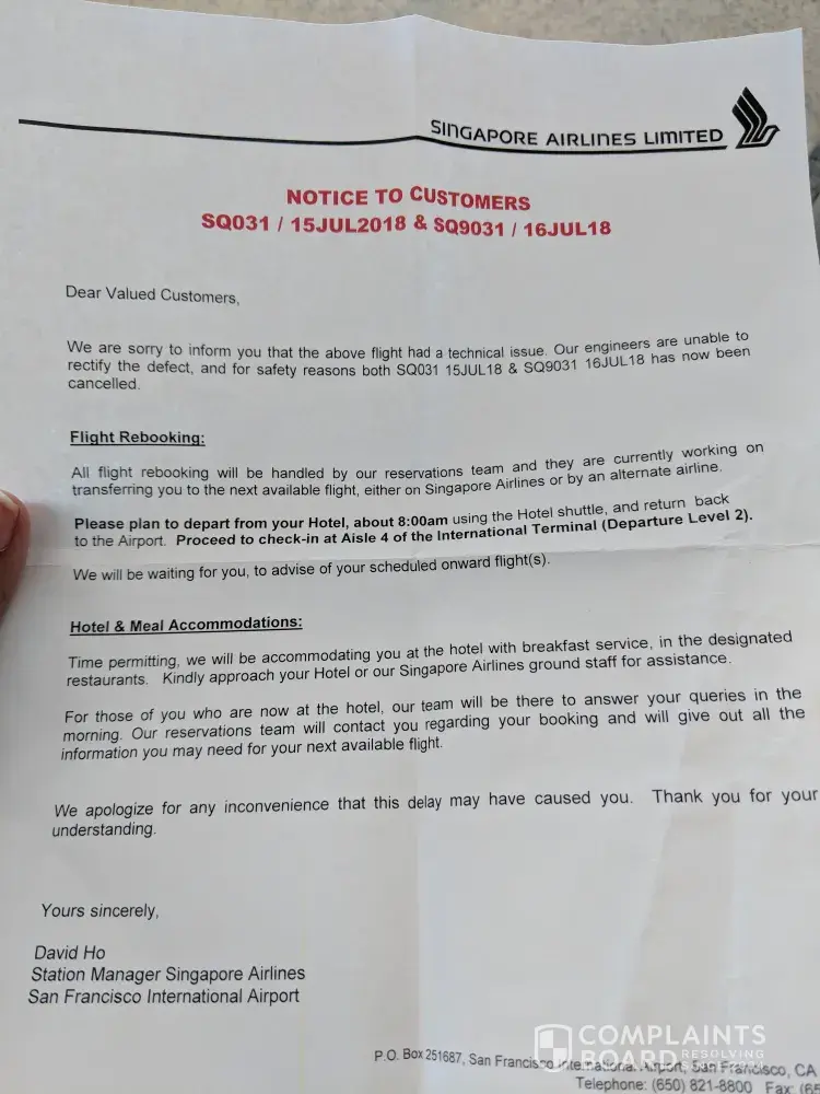 As you can see our flight time was 12 hours, our original flight was held over 5 hours and we also had a joining flight of 8 hours with a 4 hour stop over. This is the first time we have flown with singapore airlines and we have never encountered such a disruption to our flight and such poor handling of it.