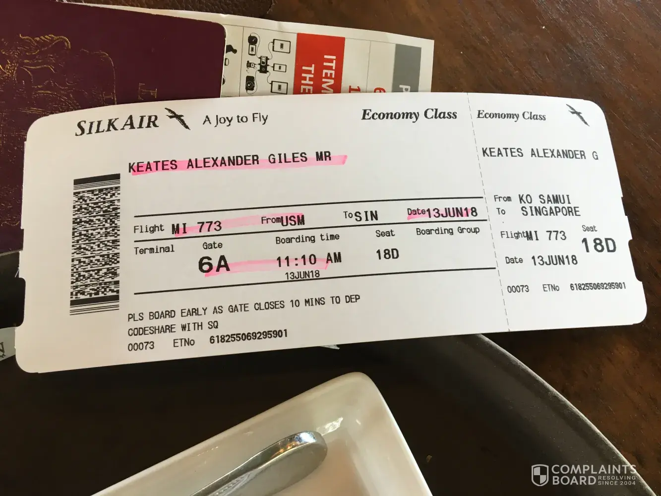 Alexander Keates and I am booked on the 11.50 to SIN from USM today.