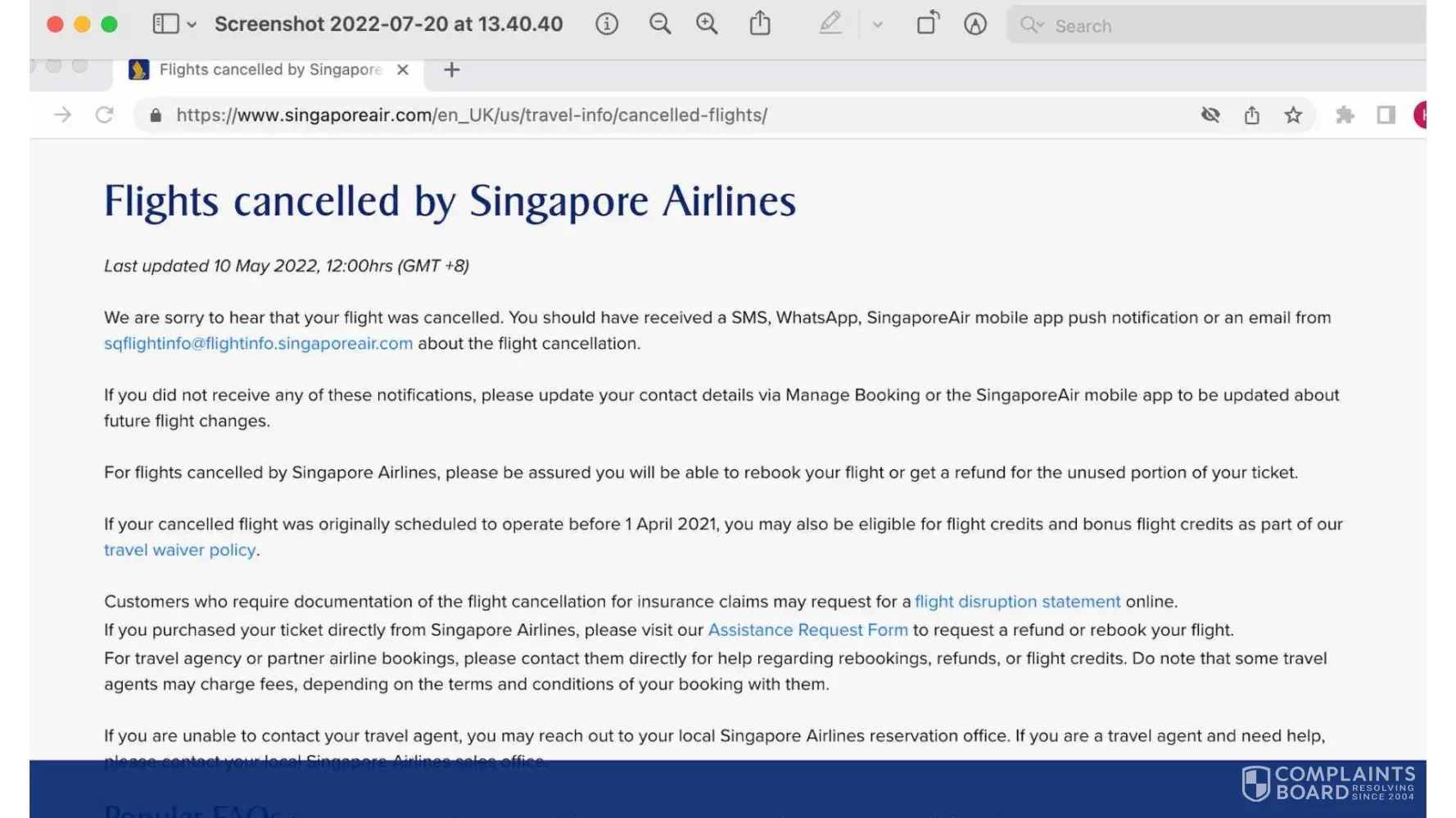 I can’t believe that Singapore airlines are not dealing with this issue and have taken my money and not provided me with the service I have paid for.