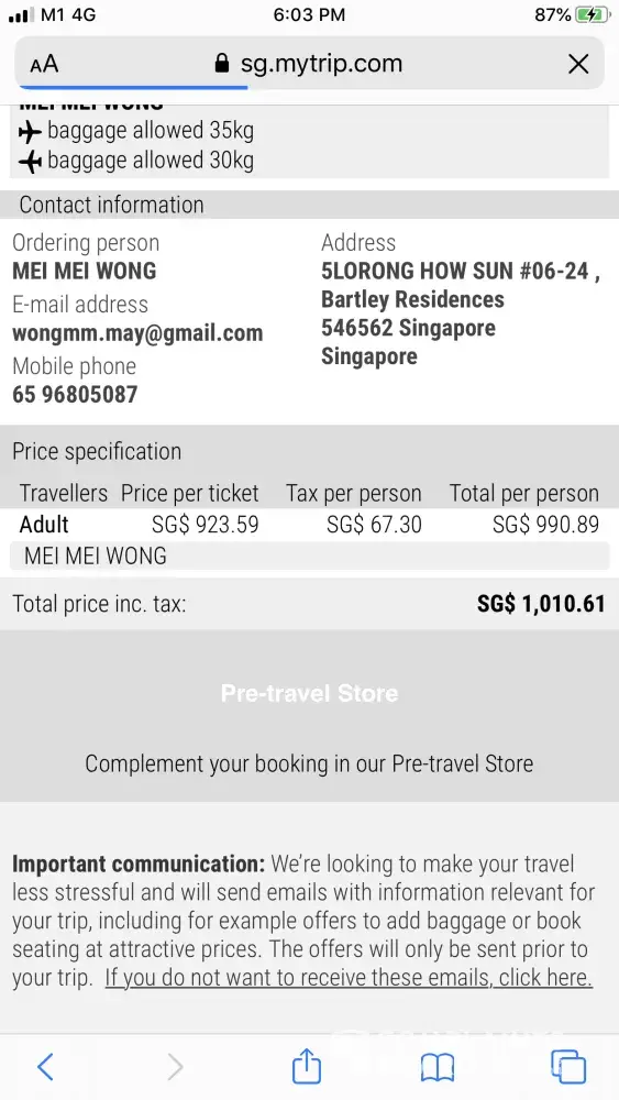 Please note the picture of the boarding passes is for me only but booking is for 3 persons.