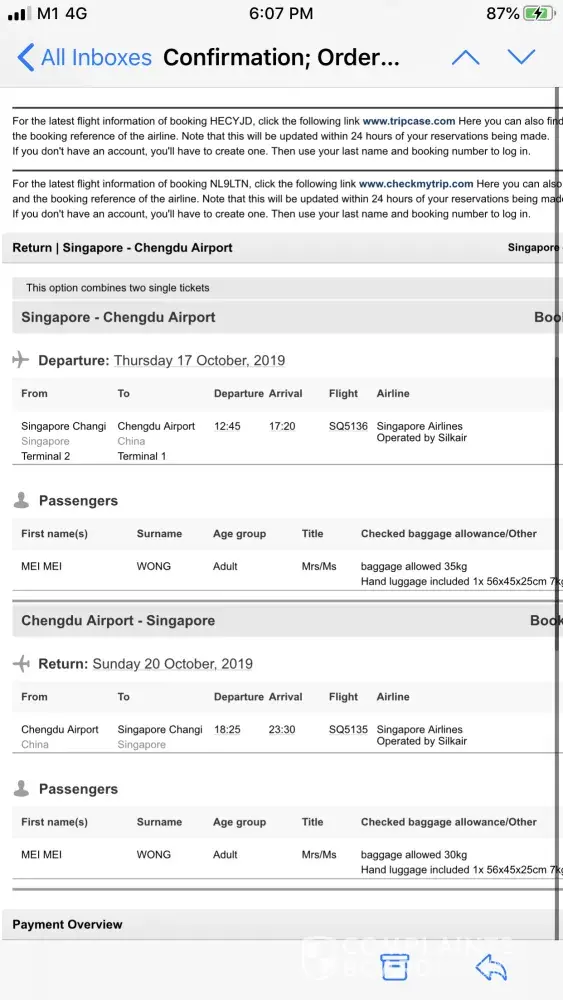 I replied the email and requested a thorough investigation and explanation. I decided that I want my luggage back since the marketing company told me that my luggage could still be in the storeroom. On 1 Oct SATS staff in her email mentioned that she has referred to SIA on my request and would revert to me upon their advice.