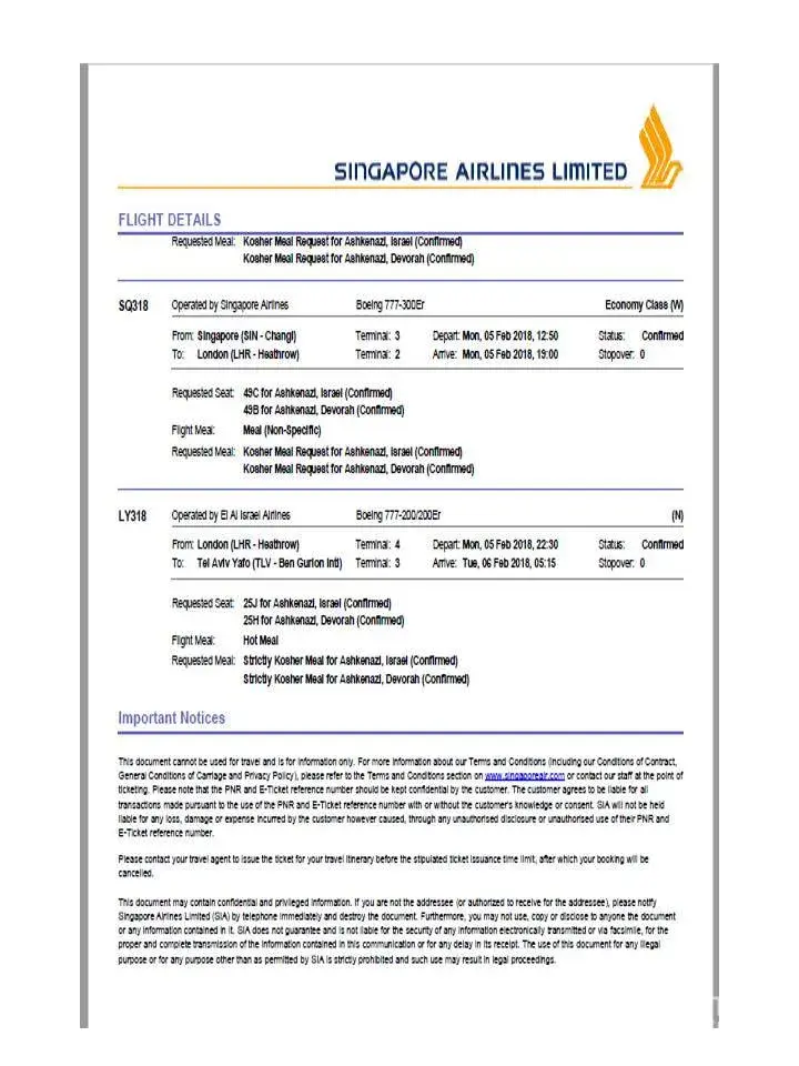 PLEASE NOTE THAT THE DOC OF ELECTRONIC TICKET ISSUES BY SINGAPORE AIRLINES THEMSELVES