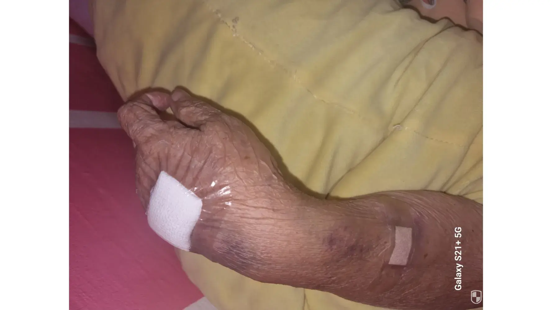 Suddenly when my mum came back home her both hand have bruises so many like been abuse and none of the nurse say anything...I show u the picture...My mum have mention that she have told the nurse is so pain but the nurse keep doing it..and im not happy abt it ...please have sympathetic and pity for the old one ...please update me the outcome