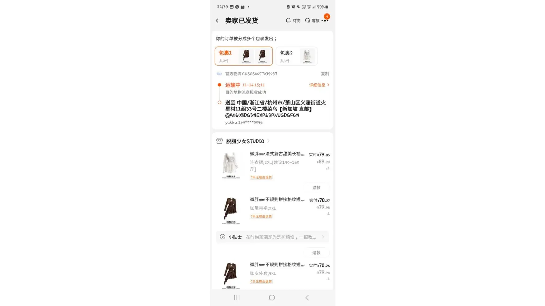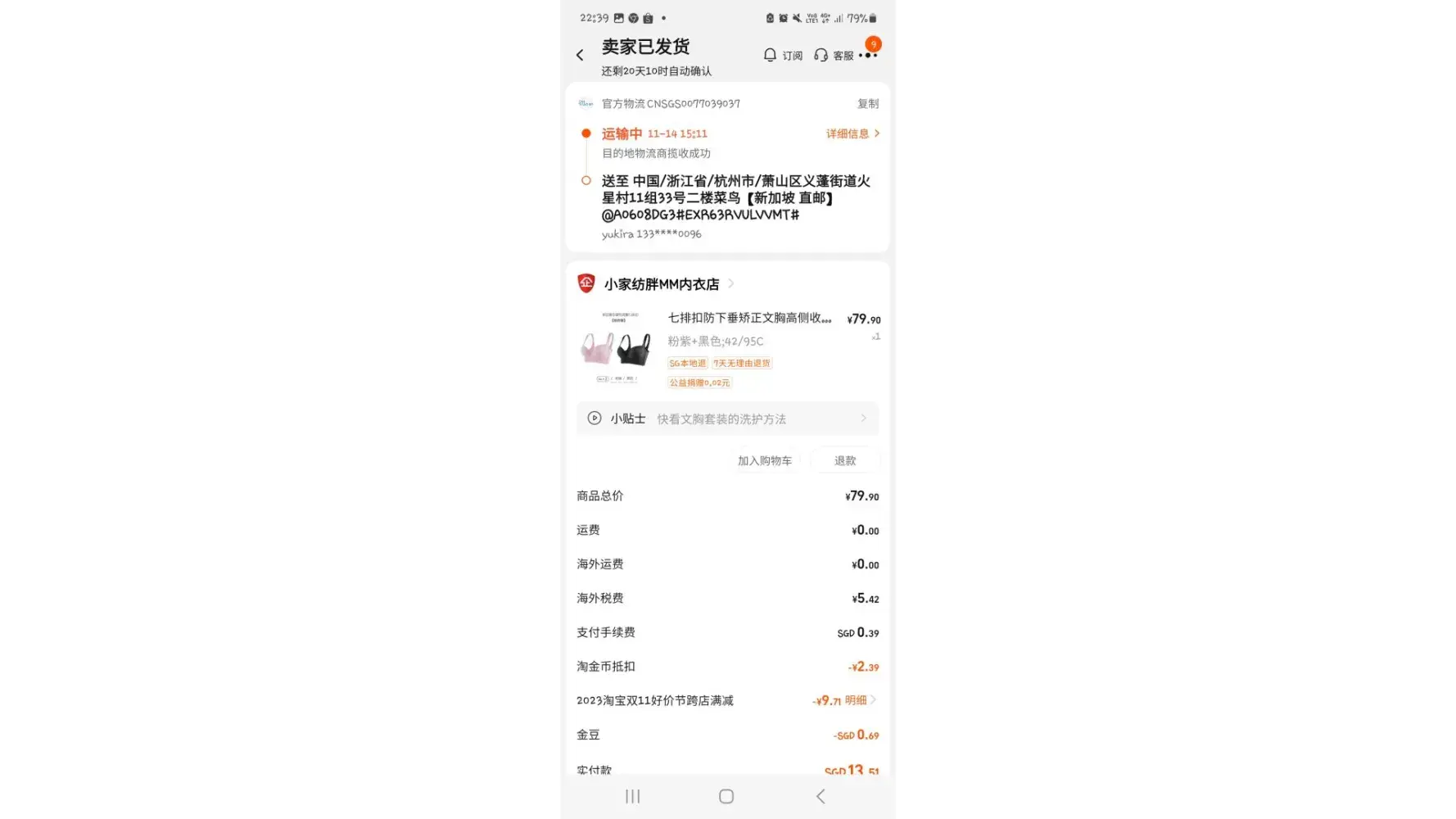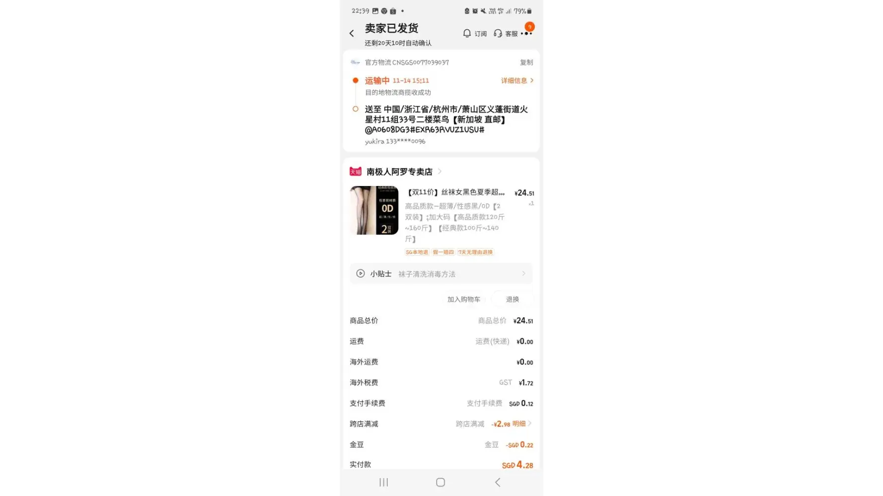 3. SingPost Parcel number: CNSGS0098390802
