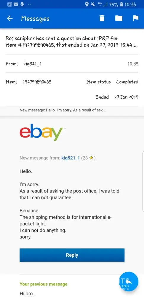 So I did I was told but I was skeptical because the fault does not even lie on the sender or his local postoffice!