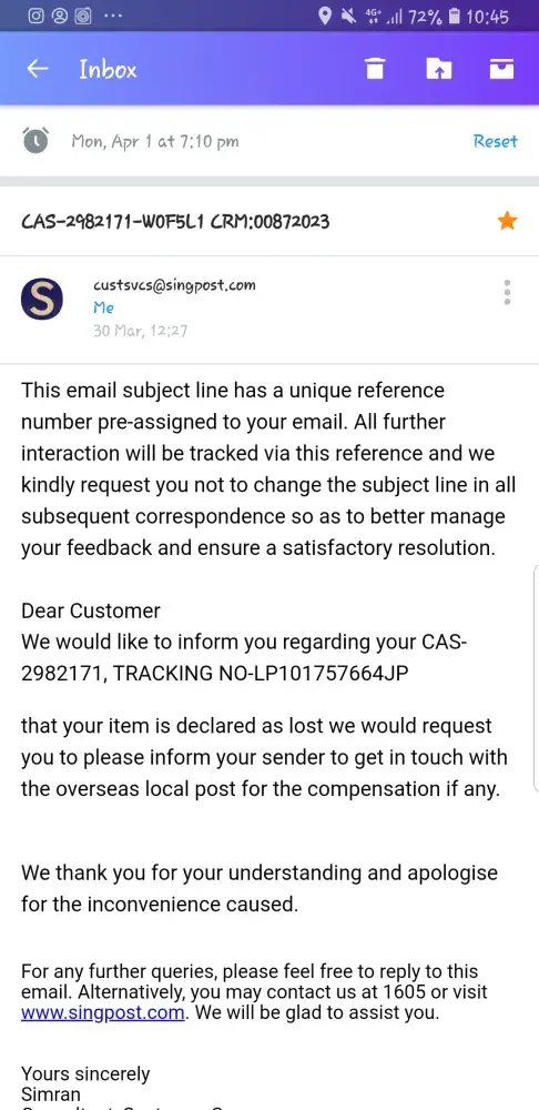 For Singpost, with over 160 years of service, to have already issued an apology just in January this year, and yet displaying continued lack of professional, is leaving us very impressed indeed. Not to mention being Singaporeans, we have been witnessing the deterioration of your trustworthy public company.