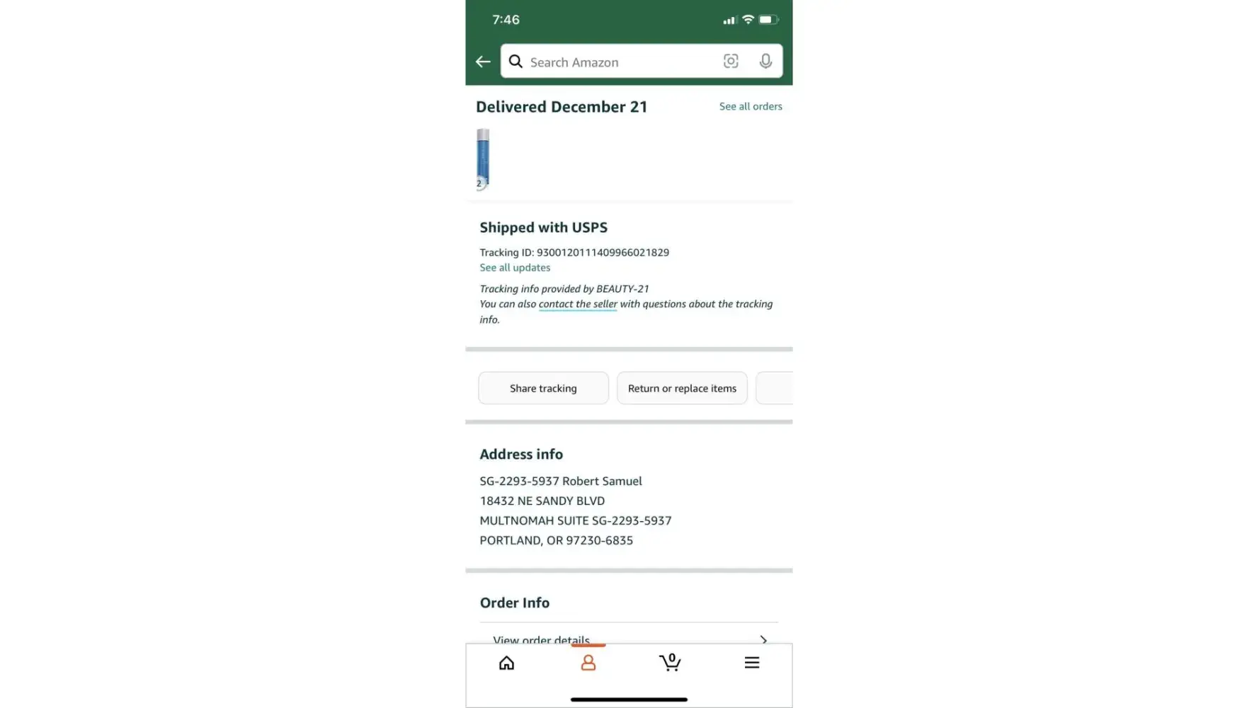 Package was delivered in US warehouse but can’t locate saying that items has no vpost account number