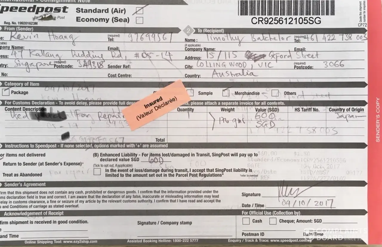 I am submitting to the complain board in addition to the feedback form at Singpost website because my first feedback was ignored.
