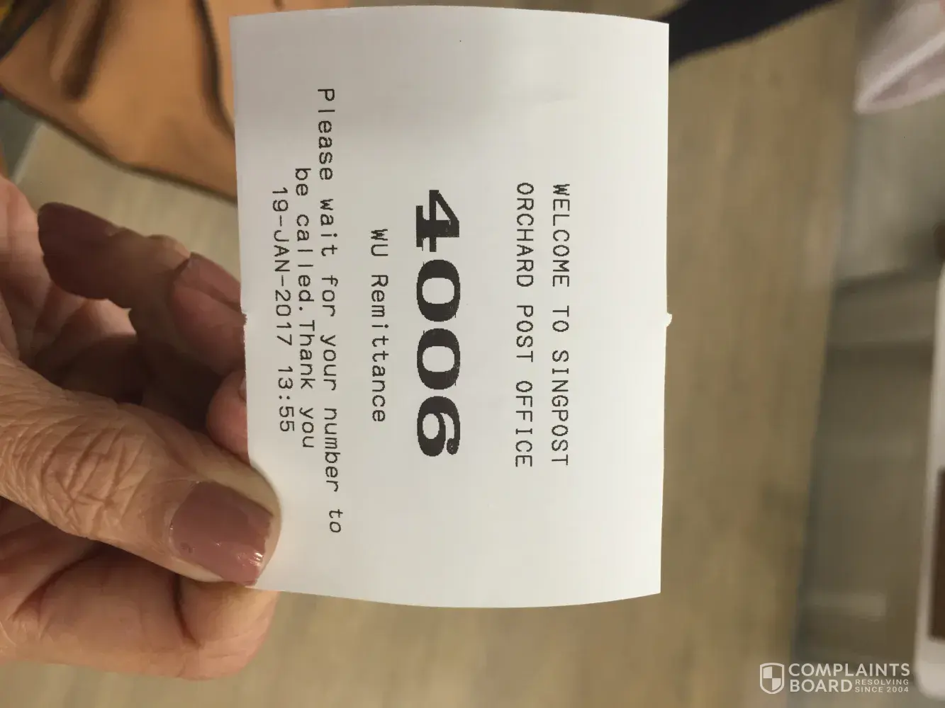 She reached the Post office n took a queue no at 1.55pm under their dedicated queue counter 3 for western union.