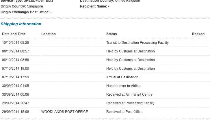 My parcel is in Singapore, yet two weeks later, my URGENT parcel is still sitting in a warehouse here in Singapore awaiting delivery to me.