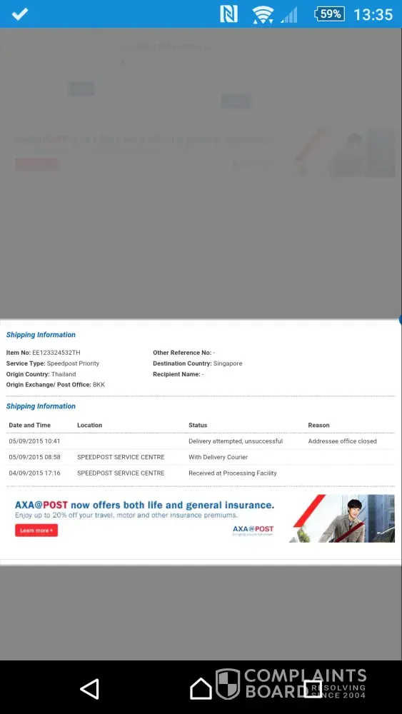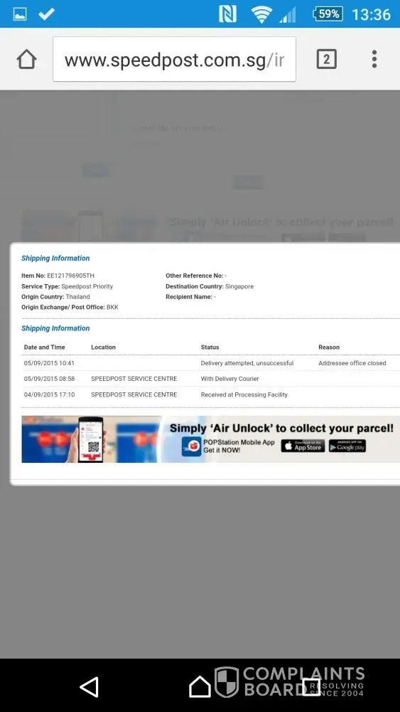If I do not hear from Speedpost within 48hours, I will seek help from the Police for this forgery matter.