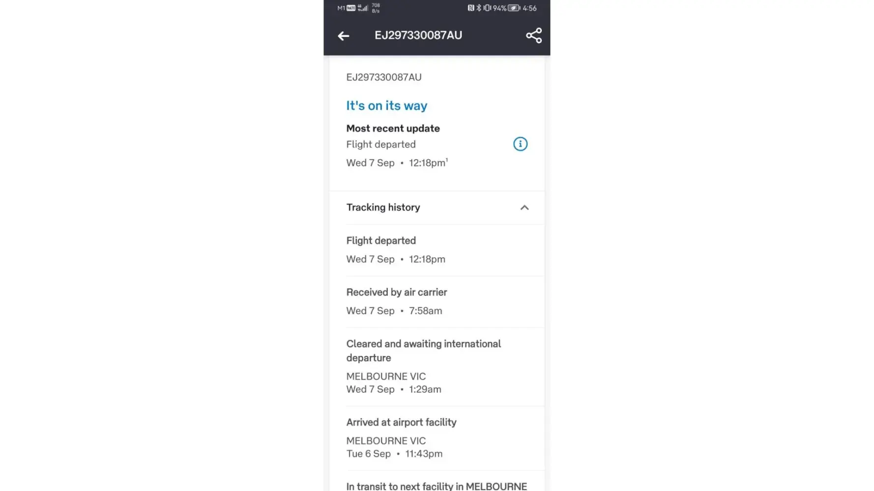 5 days later, I email Australia and they told me to check with local post and track no.ET193357400AU. Upon checking then I knew the parcel was in 5 days ago.